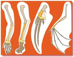 Uçan sürünən, quş və yarasa qanadları. Arada heç bir təkamülçü əlaqə qurula bilməyən bu qanadlar oxşar quruluşa sahibdirlər.