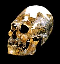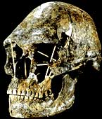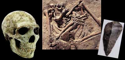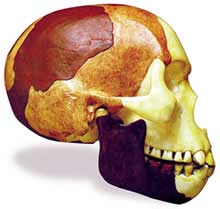 |  Neandertal : İnsan irqiSağda  İsraildə tapılan Homo sapiens neanderthalensis,Amud  bir kəllə sümüyü var. Fosilin sahibinin 1,80 m uzunluğunda olduğu təxmin  edilir. Beyinin həcmi bu günə qədər   tapılanların ən böyüyüdür. 1,740 sm3. Altda isə Neandertal  irqinə aid fosil skelet və bu skeletin sahibi tərəfindən istifadə olunduğu  hesab edilən bir daş alət var. Əldə olunan bu və buna oxşar tapıntılar  Neandertalların zaman ərzində itmiş özünəməxsus bir insan irqi olduqlarını göstərir.