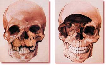 |  Atapuerka dağında tapılan fosildən istifadə edilərək  bərpa edilən kəllə sümüyü (solda) ilə  dövrümüzdəki insana aid kəllə sümüyü (sağda) son dərəcə  oxşardır. |  İspaniyanın Atapuerka ərazisində  tapılan üz sümüyü bugünkü insanlarla eyni üz quruluşuna malik olan insanların  800 min il əvvəl də yaşadıqlarını göstərirdi.
