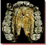 AL 666-1 : 2,3 milyon  illik  insan çənəsiAL 666-1 fosili 1994-cü ildə  Həbəşistanda Hadarda  A.afarensis   fosilləri ilə bərabər tapıldı. 2,3 milyon illik tarixi olan  bu çənə tamamilə Homo sapiens xüsusiyyətlərini  göstərirdi. AL 666-1 nə bir yerdə tapıldığı A.afarensis  çənələrinə, nə də  1,75 milyon il yaşındakı Homo habilis  çənəsinə oxşayırdı. Bu iki növün  çənələri dar və dördkünc şəklindəki  quruluşları ilə dövrümüzün meymunlarının çənələrinin oxşarları idi. Ancaq AL  666-1 fosilinin  “Homo“ (insan) növünə  aid olduğu qətidir. Təkamülçü paleontoloqlar bu həqiqəti qəbul edir, ancaq yenə  də bu  mövzuda qəti söz söyləməyə çəkinirlər.  Çünki bu çənə üçün hesabladıqları 2,3 milyon illik yaş  “Homo”, yəni insan növü üçün təyin etdikləri  yaşdan artıqdır. |