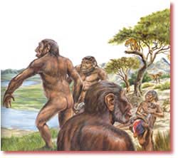 |   Australopithecus növləri  kəllə sümükləri və bundan başqa  skelet  quruluşlarına görə indi yaşayan meymunlara cox oxşayırlar. Sağdakı rəsmdə bədənin  sol tərəfi şimpanze, sağ tərəfi  isə  austrapithecus skeletini göstərir. Rəsmi çəkən antropoloq professor  Andrien L.Zilman  bu iki canlının  skelet   quruluşlarının cox oxşar   olduqlarını qeyd edir.