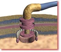 Bu elekrtrik motorudur. Amma bu elektrik motoru bir ev alətində və ya bir nəqliyyat vasitəsində deyil, bu bir bakteriyanın üzərində mövcuddur. Bakteriyalar milyon illərlə sahib olduqları bu motor sayəsində “qamçı” adlanan orqanlarını hərəkət etdirir və suda üzürlər. Bakteriya qamçısının motoru 1970-ci illərdə kəşf edilmiş və elm aləmini təəccübləndirmişdi. Çünki təxminən 250 ayrı molekulyar hissədən ibarət olan bu “sadələşdirilməz kompleks” orqanın Darvinin iddia etdiyi təsadüf mexanizmləri ilə açıqlanması mümkün deyil. |