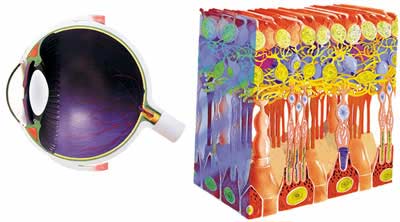 İnsan gözü təxminən 40 ayrı hissənin birgə işləməsi ilə görür. Bu hissələrin bir olmazsa, göz öz funksiyasını itirər. Bu 40 ayrı hissənin hər biri öz içində mürəkkəb dizayna sahibdir. Məsələn, gözün arxa hissəsindəki tor qişa təbəqəsi 11 ayrı təbəqədən ibarətdir. (Sağda ). Bu təbəqələrdən hər birinin ayrı vəzifəsi vardır. Təkamül nəzəriyyəsi bu cür mürəkkəb bir orqanın necə əmələ gəldiyinə cavab verə bilmir. |