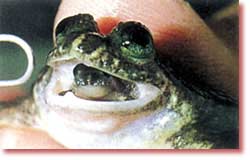 Bu qurbağa növünün dişiləri bala çıxartma zamanı boyunca balalarını mədələrində saxlayır və axırda balalarını ağızlarında dünyaya gətirirlər. Ancaq bu əməliyyat üçün yumurtaların quruluşunun nizamlanması, mədə turşularının təsirsiz edilməsi, ananın həftələrlə qidalanmadan yaşaya bilməsi üçün bir çox nizamlanma eyni zamanda və xətasız olaraq işləməlidir. |