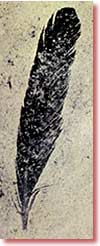 Archeopteryxin uçan bir quş olduğunun mühüm sübutlarından biri, asimmetrik tük quruluşudur. Yuxarıda bu canlıya aid tük fosili var. |