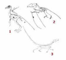 Bilinən ən qədim quş ( Archaeopteryx), bir uçan sürünən və təkamülçülərə görə bu canlıların ən yaxın qohumu sayılan quru sürünəni. Canlılar arasında fərq yenə cox böyükdür. |