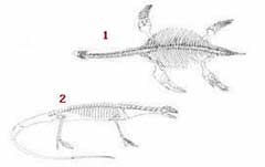 İki ayrı cinsdə dəniz sürünəni və təkamülçülərə görə bu canlıların ən yaxın atası olan quru canlısı.Canlılar arasındakı böyük fərqlərə fikir verin. |