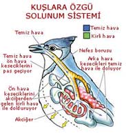 Nəfəs alarkən: Quşun nəfəs borusundan içəri girən təmiz hava, həm ağciyərə həm də ağciyərin arxasında yerləşən arxa hava kisəçiklərinə dolur. Ağciyərdə olan kirlənmiş hava isə ön hava kisəçiklərinə ötürülür. Nəfəs verərkən: Quş nəfəs verərkən, arxa hava kisəçiklərində toplanan təmiz hava, ağciyərin içinə dolur. Bu sistem sayəsində ciyərlə təmiz hava ötülməsi heç kəsilmədən davam edir.