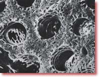 Quşun ağciyərinin içində olan və havanın tək istiqamətli hərəkət etməsini təmin edən kiçik “parabronx” boruları. Bu boruların hər biri 0,5 mm olçüdədir. |