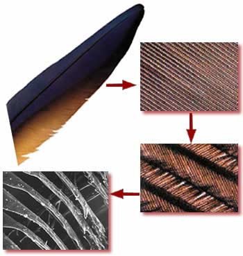 Quç tüklərini əsaslı şəkildə tətqiq etdikdə cox həsas dizayn ortaya çıxır.Hər tükçüyün üstündə coxlu kiçik tükcüklər və bu tükçükləri bir-birinə bərkidən çəngəllər var. Şəkillərdə quş tüklərinin böyüdülmüş şəkilləri var.